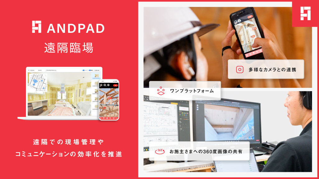 クラウド型建設プロジェクト管理サービス「ANDPAD」を運営する株式会社アンドパッド(本社:東京都千代田区、代表取締役:稲田武夫、以下アンドパッド)は、遠隔での現場管理やコミュニケーションの効率化を推進する「ANDPAD遠隔臨場」の提供を開始いたします。